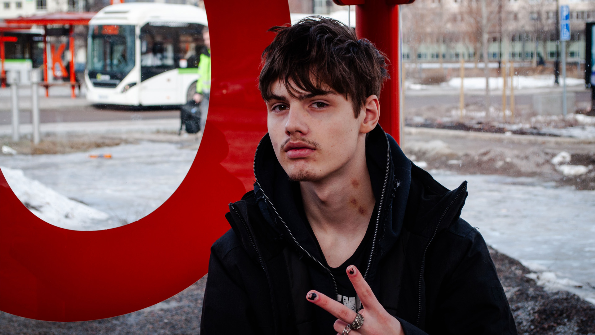 Armin Kapsta väntar på att bussen ska komma. Foto: Harry Armando Herrera Ubilla