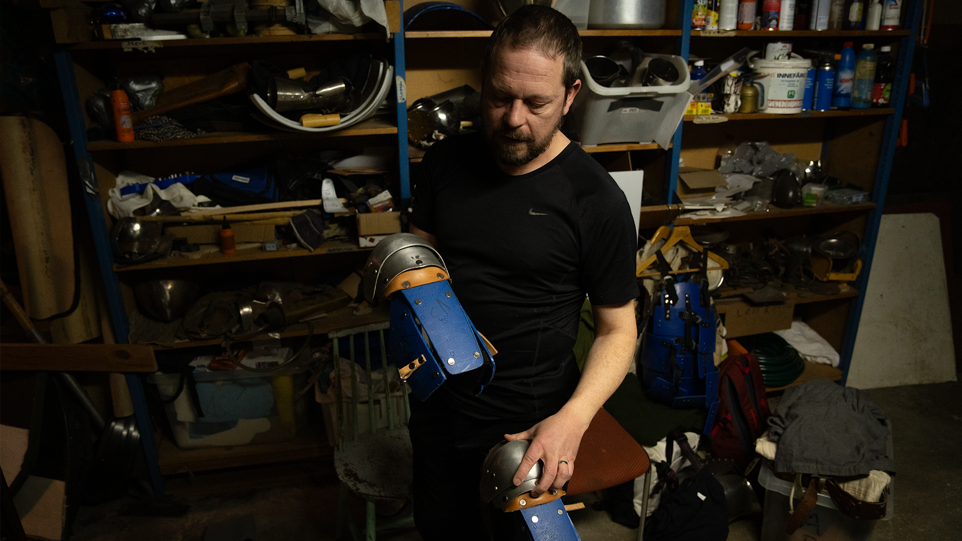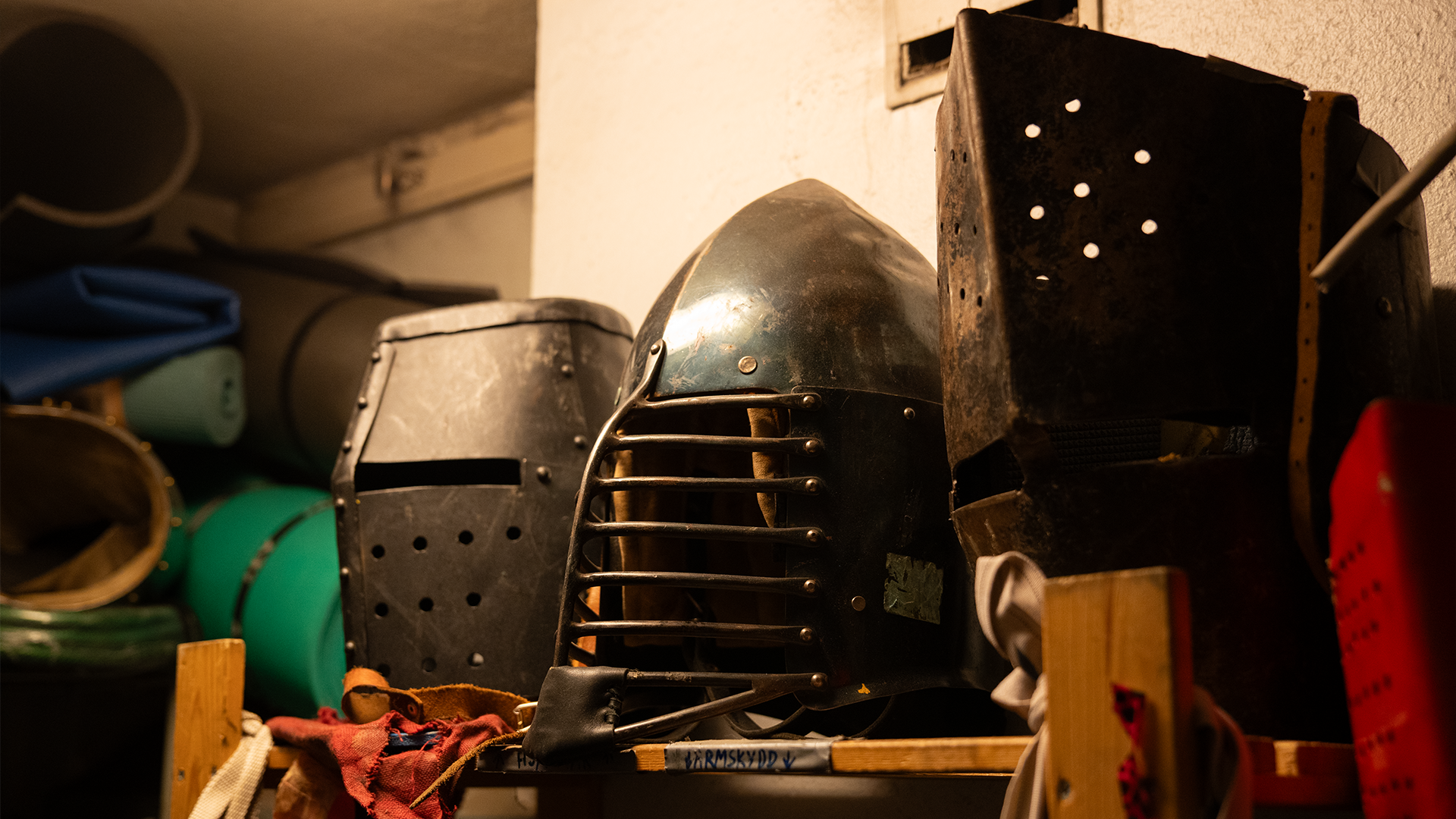 Efter genomgången går kämparna ner i källaren för att rusta upp. Lokalens källare hyser smedja, omklädningsrum och dusch där förberedelserna sker. Alla kämpar har sin egen personliga utrustning som de till största del tillverkat själva. Några har beställt specialgjorda hjälmar från smeder runt om i Europa.