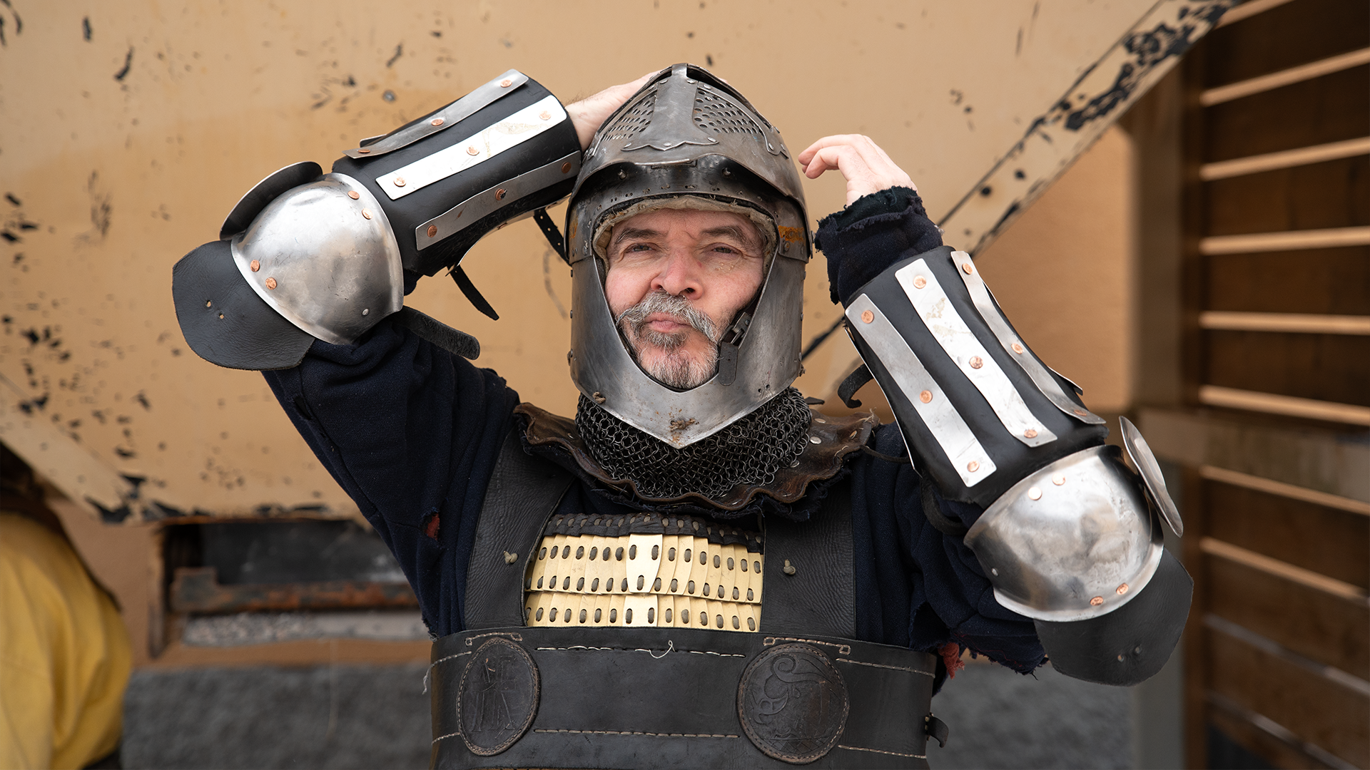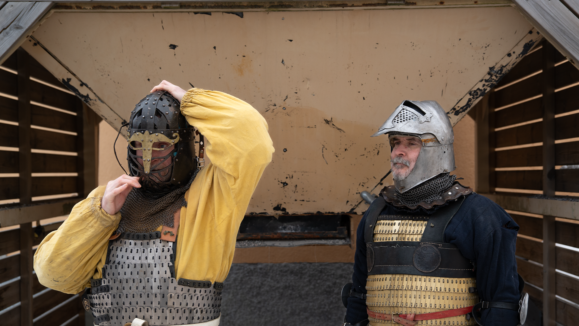 – Vi döljer det nya materialet med rustning och klädsel så det ser korrekt ut, säger kämparna. Foto: William Kärki.