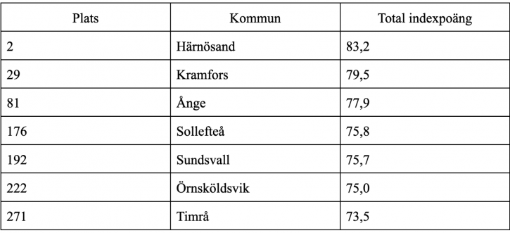 Resultat över placeringarna för Västernorrlands kommuner. Grafik: Erik Norin
