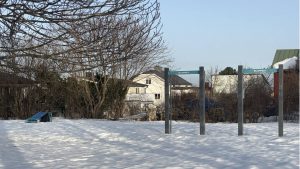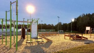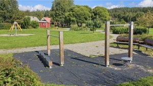 Indals utegym, utrustad med tre träningsredskap med fokus på kroppsviktsövningar och balans. Foto: Sundsvalls kommun.