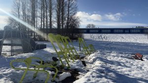 Utegymmet vid Gärdehov Arena med flera blåa maskiner. Foto: Sundsvalls kommun.