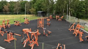 Utegymmet vid norra delen av Sidsjön erbjuder träningsmaskiner och redskap för kroppsviktsövningar. Foto: Sundsvalls kommun.