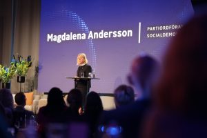 Senare var det Magdalena Anderssons tur att tala. Hon talade om samarbete mellan politik och näringsliv. Hon lyfte också det som hon tidigare tagit upp i andra sammanhang: Att hon gärna vill se en blocköverskridande energiöverenskommelse. Hon upprepade också vikten av att göra sig av med beroendet från “diktaturernas olja”. Magdalena Andersson vill inte heller låta den svenska politiken amerikaniseras genom ökad polarisering.