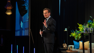 Ulf Kristersson talade framför 350 deltagere under Industridagen. Foto: Simon Sjöström.